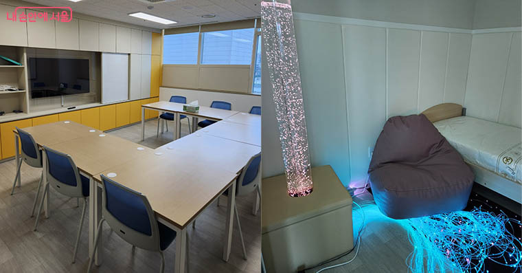 중구 발달장애인평생교육센터 내 교육실(좌)과 심리안정실(우)
