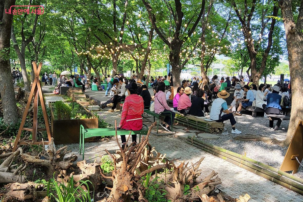 업무와 휴식을 겸한 넓은 가든에서 관람객들이 망중한을 즐기는 모습 ©이상돈