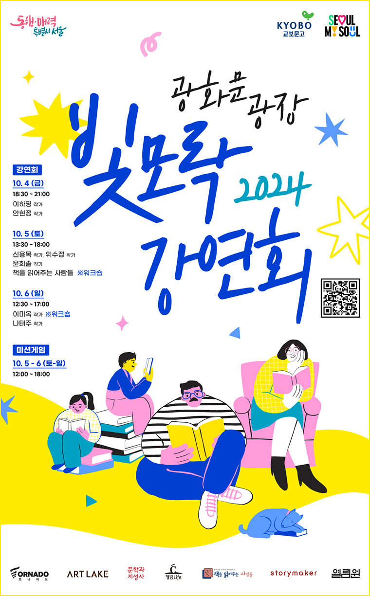 서울시와 교보문고는 가을이 깊어져 가는 10월 4일부터 6일까지 3일간 7명의 인기 작가들을 초대해 ‘광화문광장 빛모락 강연회’를 개최한다.