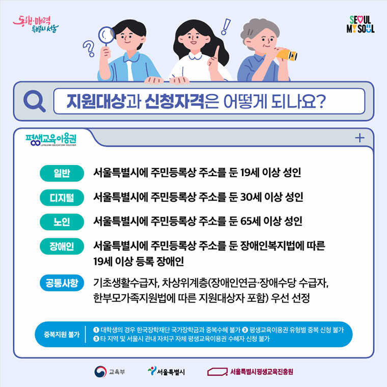 - 일반, 디지털, 노인 : 서울시 평생교육이용권 누리집을 통한 온라인 신청