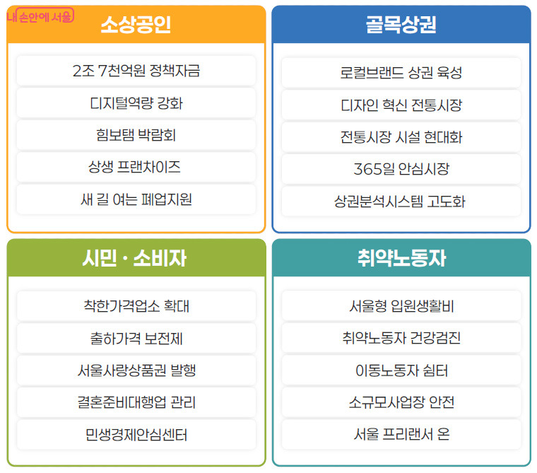 서울시는 ▴소상공인 ▴골목상권 ▴소비자 ▴취약노동자 등 경제불황 속 가장 먼저 위기에 직면하는 4대 계층에 대한 활력 회복을 주요 내용으로 하는 ‘2026년 민생경제 활력 더보탬’을 9일 발표했다.