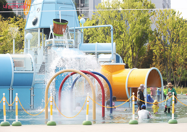 물놀이터에는 ▴집게분수 ▴통통 물방울 놀이대 ▴소리파이프 ▴멀티놀이대 등 다양한 체험형 물놀이 시설을 갖췄다. 수심은 30cm 이하로 어린이 눈높이에 맞춰 설계됐으며 미끄럼 방지 바닥재를 사용해 안전하게 이용할 수 있도록 했다.
