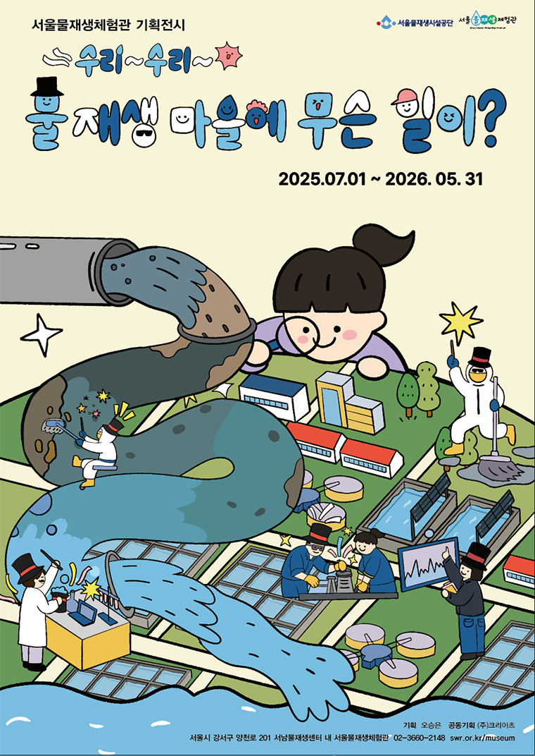 그밖에 서울물재생체험관에서는 하수처리 전 과정을 마법사들의 이야기로 풀어낸 체험형 기획전시 ‘수리수리 물재생 마을에 무슨 일이?’를 함께 진행한다.