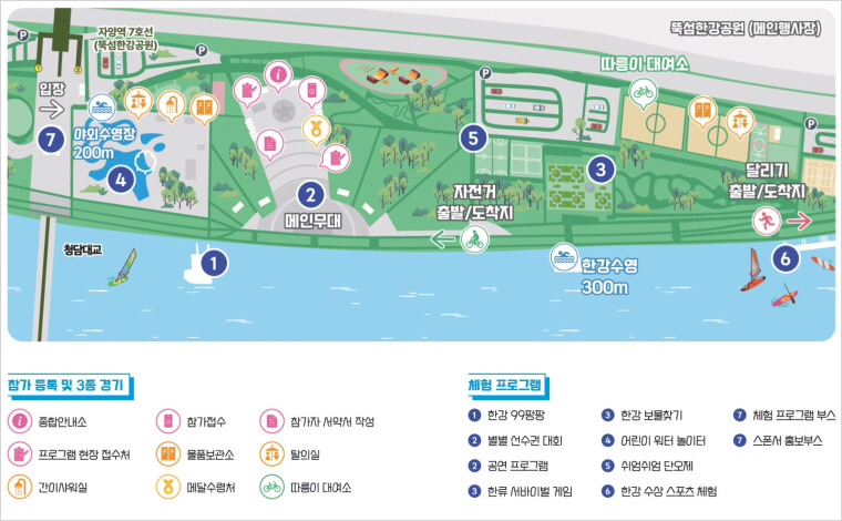이번에는 ▴한강 수영슈트 대여(2만원) 서비스 ▴탈의실·샤워실 추가 설치 등 다양한 편의 서비스가 대폭 확대됐으며, 외국인 참가자 안내 부스도 별도 운영된다.