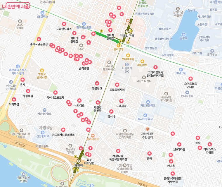 카페 | 커피뚝섬 | 동일로 34 강변빌딩 1층 | 한식 | 경원고깃집 | 뚝섬로30길 6-3 1층 |