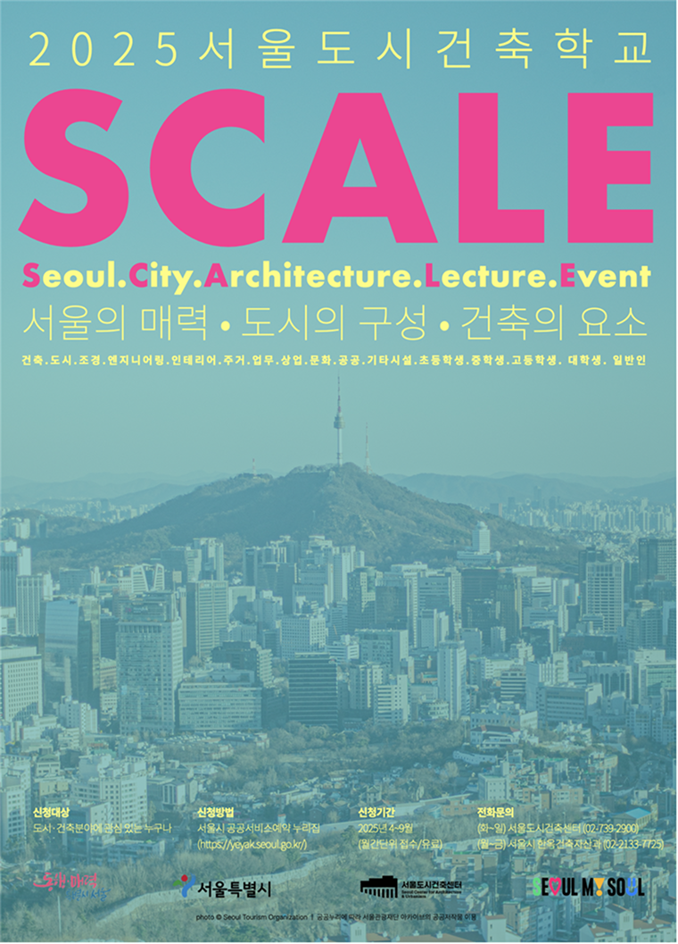 올해 11주년을 맞는 ‘서울도시건축학교’는 국내 유일한 공공기관 운영 도시건축학교로, 서울시 대표적 시민참여 프로그램이다. 올해도 ‘스케일SCALE’ 이라는 브랜드로 주제별 커리큘럼을 마련해 시민들이 도시건축에 대한 문화적 안목을 한층 높일 수 있는 교육 과정으로 구성했다. ‘스케일SCALE’은 ‘Seoul City Architecture & Lecture Event’의 약자로, 도시건축의 핵심 요소인 ‘축적’ 개념도 함께 담고 있다.