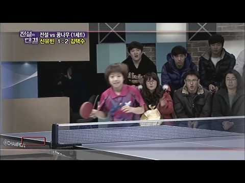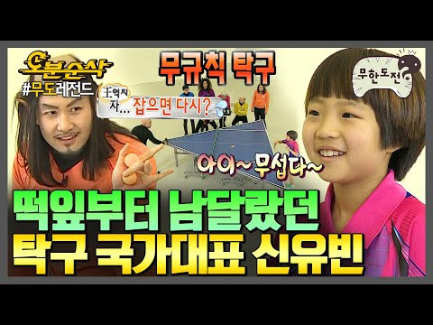 2009년 9월 12일 SBS 놀라운 대회 스타킹에 출연해 당시 국가대표 감독이었던 현정화를 상대로 강한 드라이브를 성공시키며 모두를 놀라게 했다. 무엇보다 당시 신유빈이 만 5세였는데 키가 탁구대보다 조금 큰 수준이었는데도 공격을 성공했다.