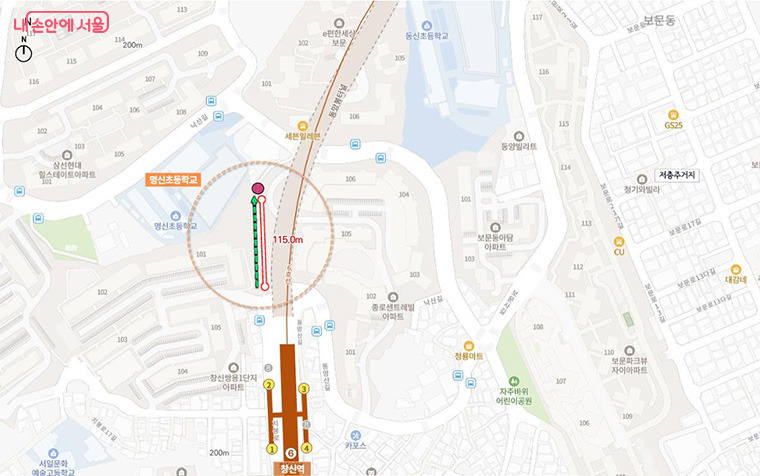 종로구 숭인동(창신역 일대) 계단은 길이가 115m로 길고 경사도 30도 이상에 달하는 급경사 계단으로, 경사형 엘리베이터를 설치해 창신역과 고지대 주거지 간 보행 편의성을 높이고 인근 학교 학생들의 통학로 안전성을 확보한다. 대상지는 종로구와 성북구 경계에 위치한 만큼 종로구 및 성북구 주민은 물론, 상부 낙산공원·서울한양도성길을 찾는 관광객들에게도 유용한 이동 수단으로 활용될 예정으로 관광명소 활성화가 기대된다.