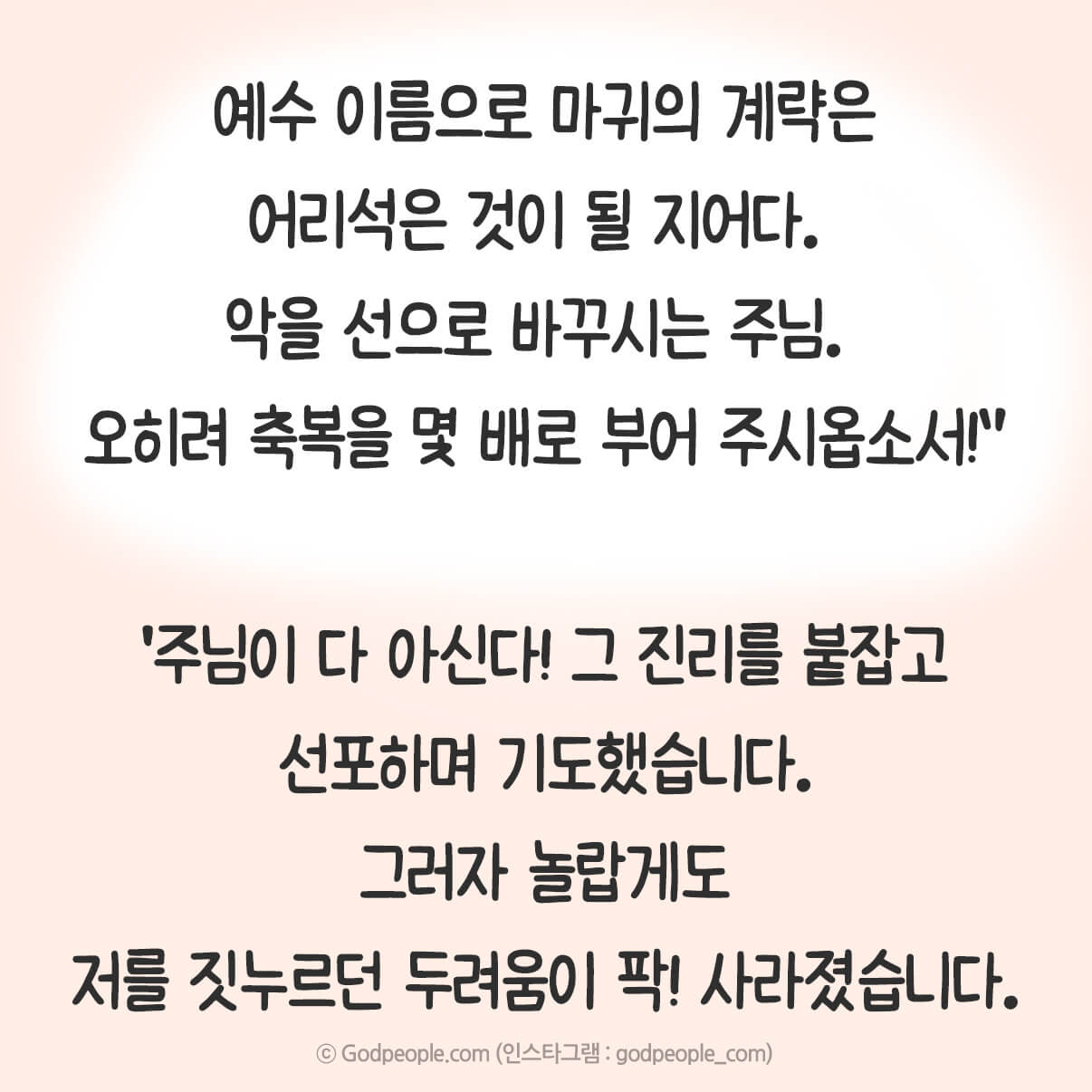 예수 이름의 권세를 사용하여 마귀의 계략을 끊게 하소서.