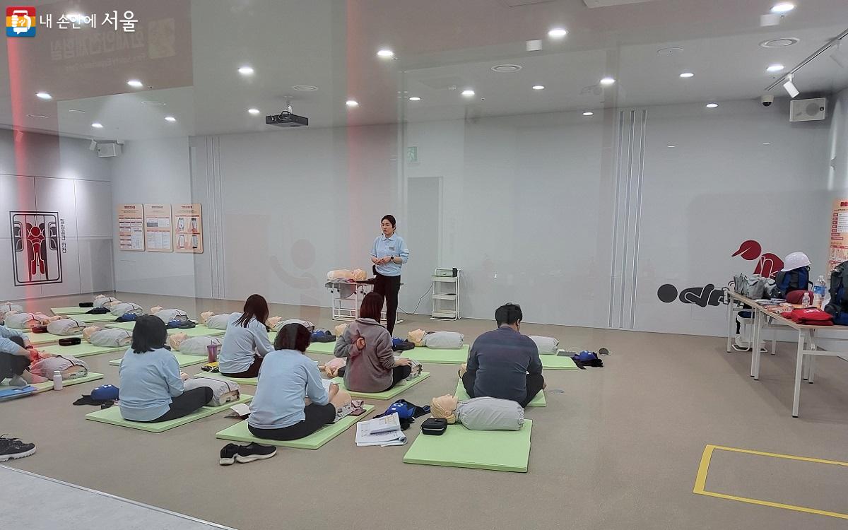 정지된 심장을 대신해 심장과 뇌에 산소가 포함된 혈액을 공급해 주는 아주 중요한 응급처치인 심폐소생술을 배우는 사람들이 있다. 1분에 약100회, 골든타임 4분 이내에 가슴 압박과 자동심장충격기를 사용하는 실제 상황을 연습한다. 환자를 잡고 지나치게 흔들 경우 목뼈와 척수를 다칠 수 있으므로 주의해야 한다고 강사님이 강조하신다.