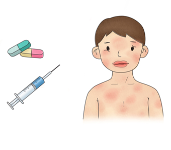 ○ "약물 알레르기" 의 대표적인 증상으로는 약을 복용한 후 두드러기, 발진, 발열, 호흡곤란 등으로 나타나는데, 이때는 당황하지 말고 가벼운 증상일 경우 차가운 습포를 대주고 피부에 자극을 주지 않도록 하며 심각한 경우에는 즉시 복용하던 약물을 중지하고 응급실로 가는 것이 좋으며,