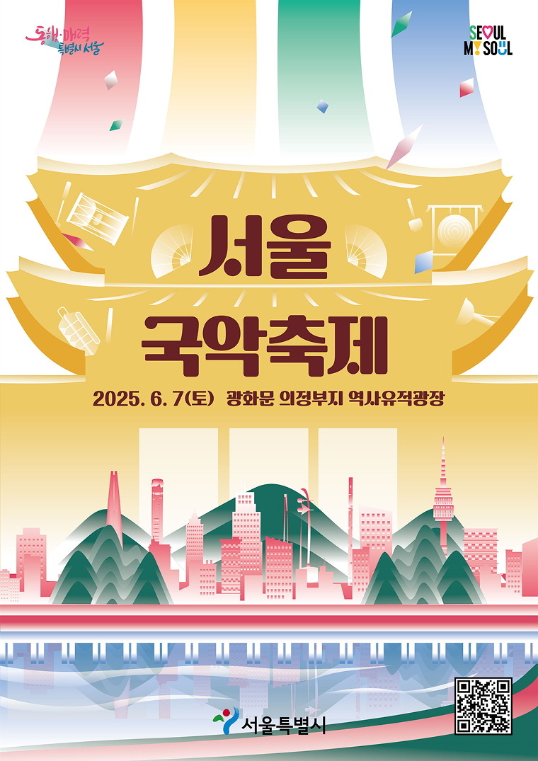서울시가 오는 6월 7일 오전 10시부터 오후 9시까지 광화문 앞 의정부지 역사유적광장에서 ‘2025 제7회 서울국악축제’를 개최한다. 특히 올해는 매년 6월 5일을 ‘국악의 날’로 지정한 첫 해로, 축제의 상징성과 중요성이 더욱 크다.