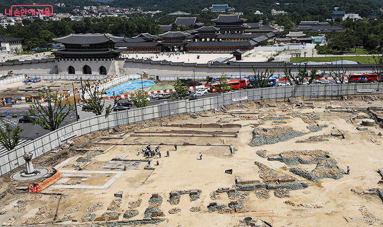 서울시가 경복궁 광화문 앞 ‘의정부지 역사유적광장’ 현장을 18일부터 시범 개방한다