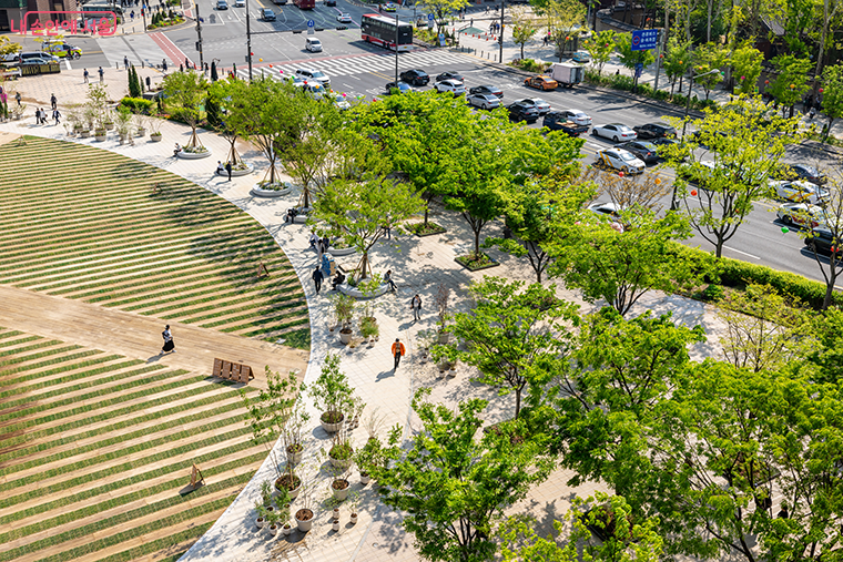 광장 곳곳에 정원 꾸미고, 나무‧정원 주변 벤치형태 ‘플랜터’ 설치