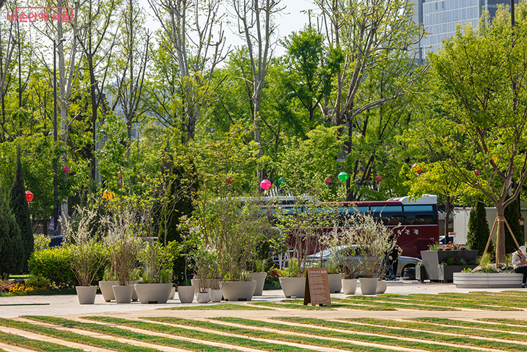 광장 주변에는 이동 가능한 화분 300여개를 배치하고, 정원형 포토존을 설치했다.