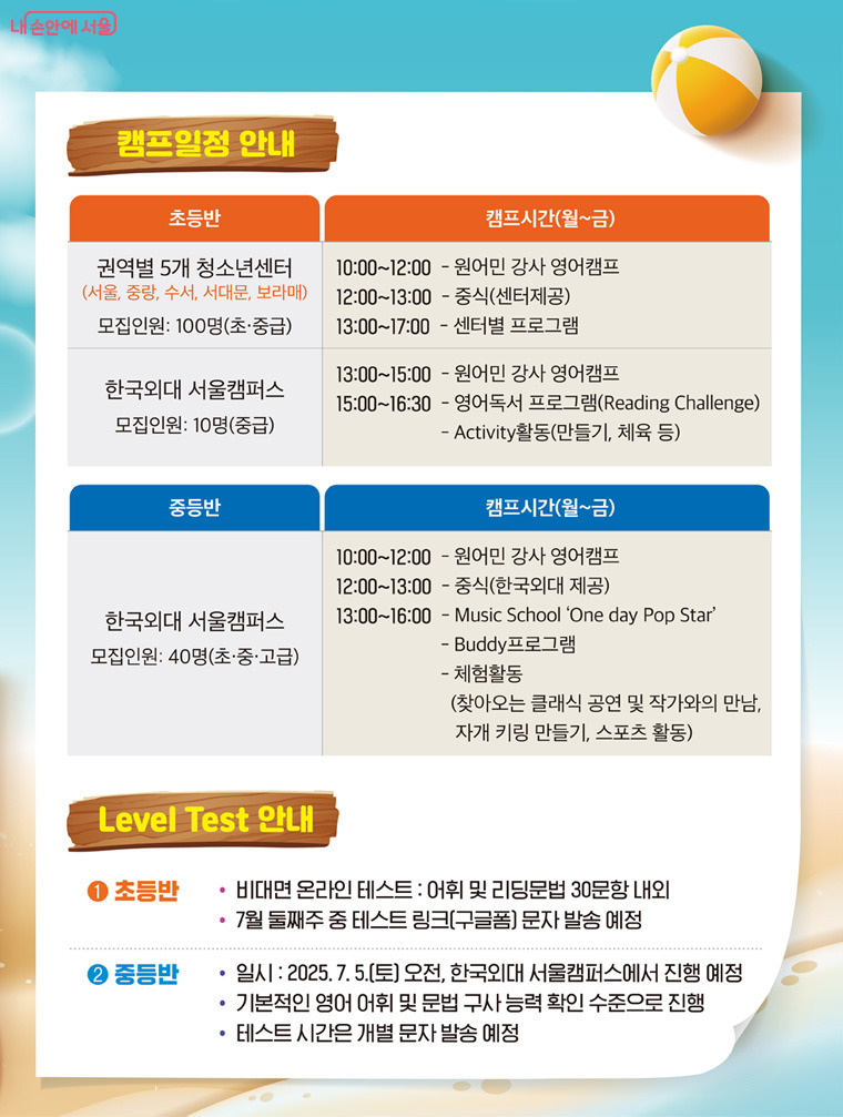 서울시는 방학을 맞아 영어동행캠프를 진행한다.