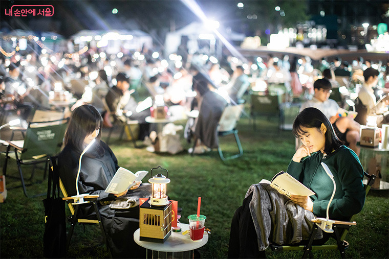 서울야외밤도서관 행사를 즐기고 있는 시민들