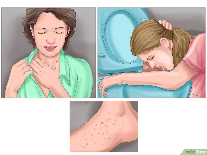 - 다음 증상들로 고통을 호소하는 경우: 아픈 목, 메스꺼움, 구토, 설사, 발진, 두통, 혈변, 이통, 복통, 호흡 곤란, 착란, 경부통, 소변 시 통증