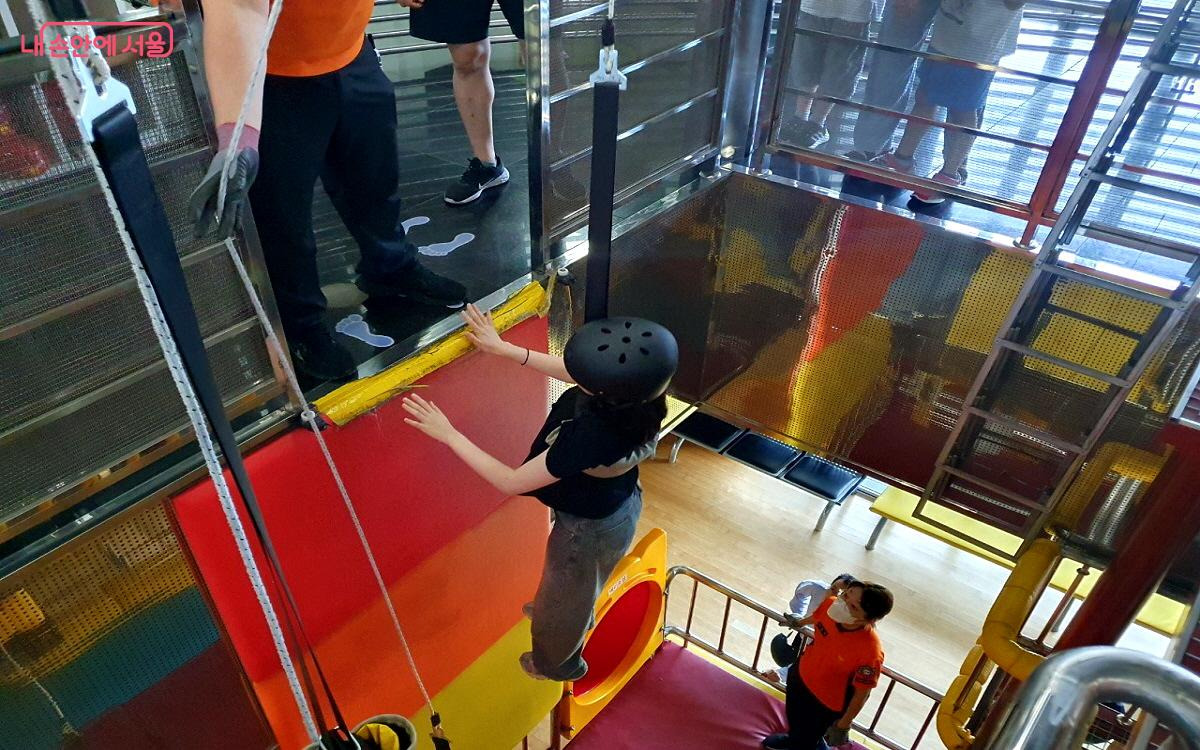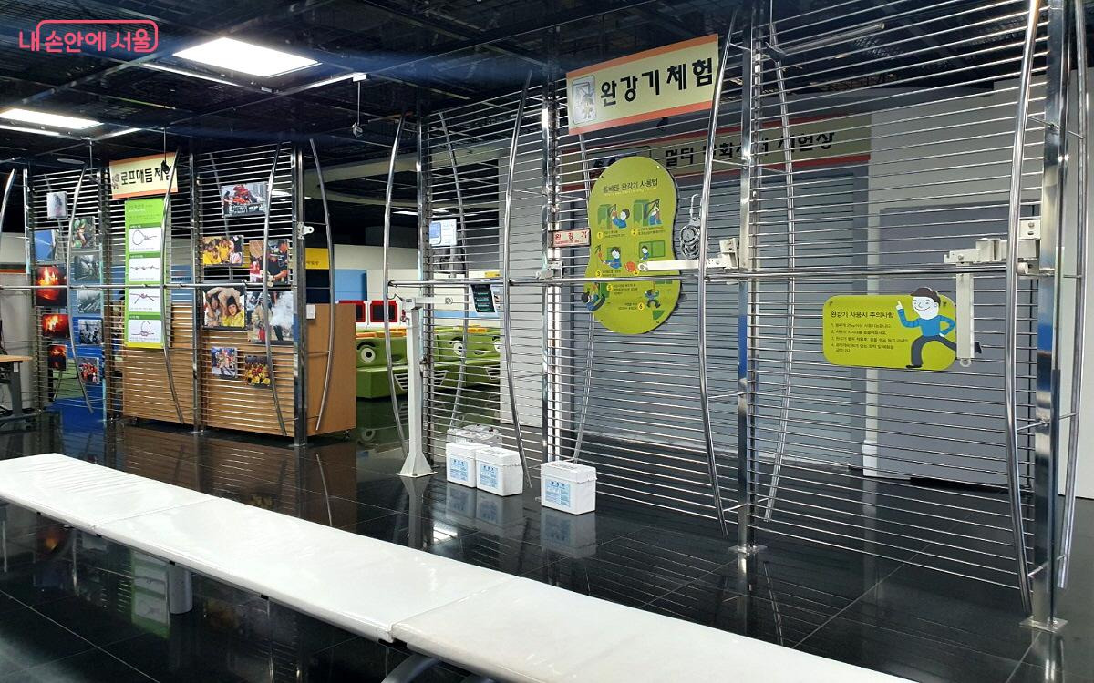 광나루 안전체험관 3층에 마련된 완강기 체험장 ©엄윤주