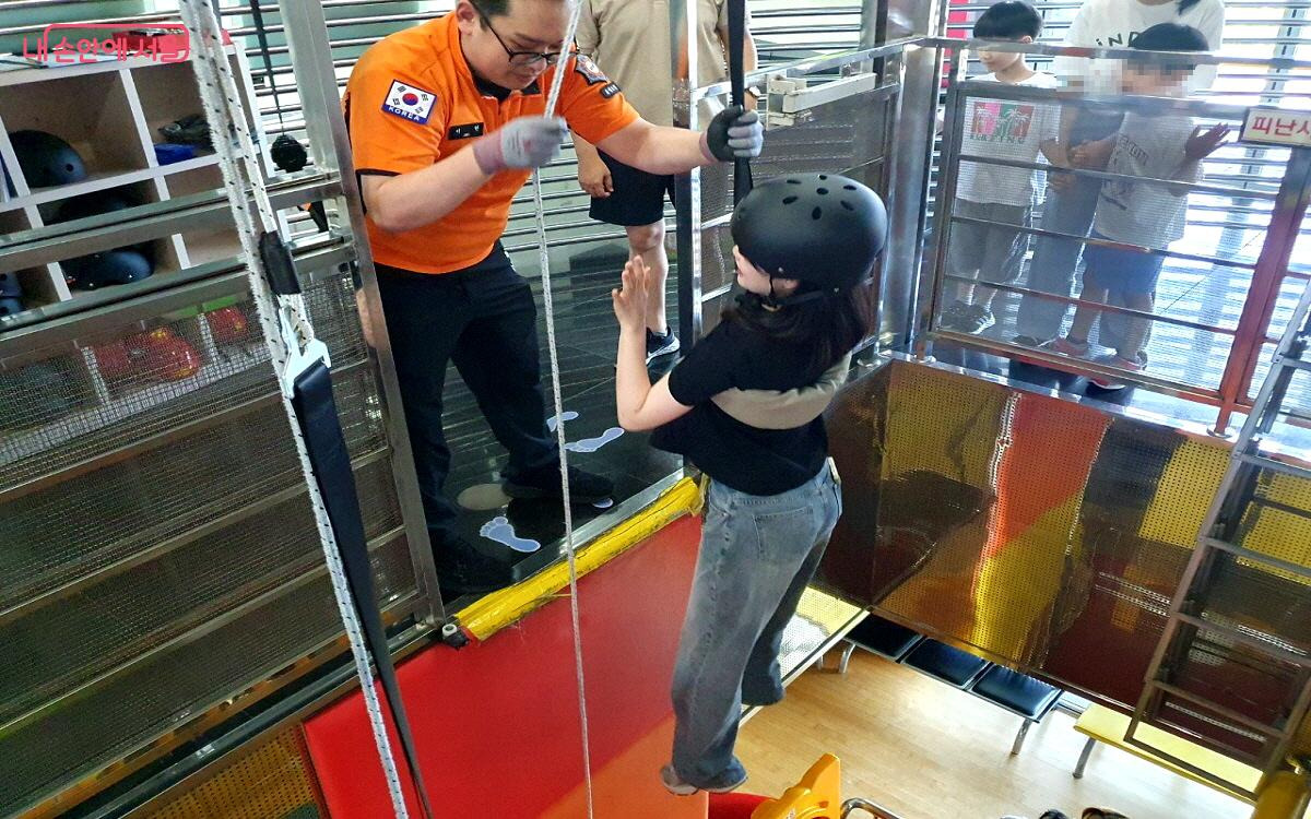 안전교육 중 실시되는 완강기 체험 ©엄윤주