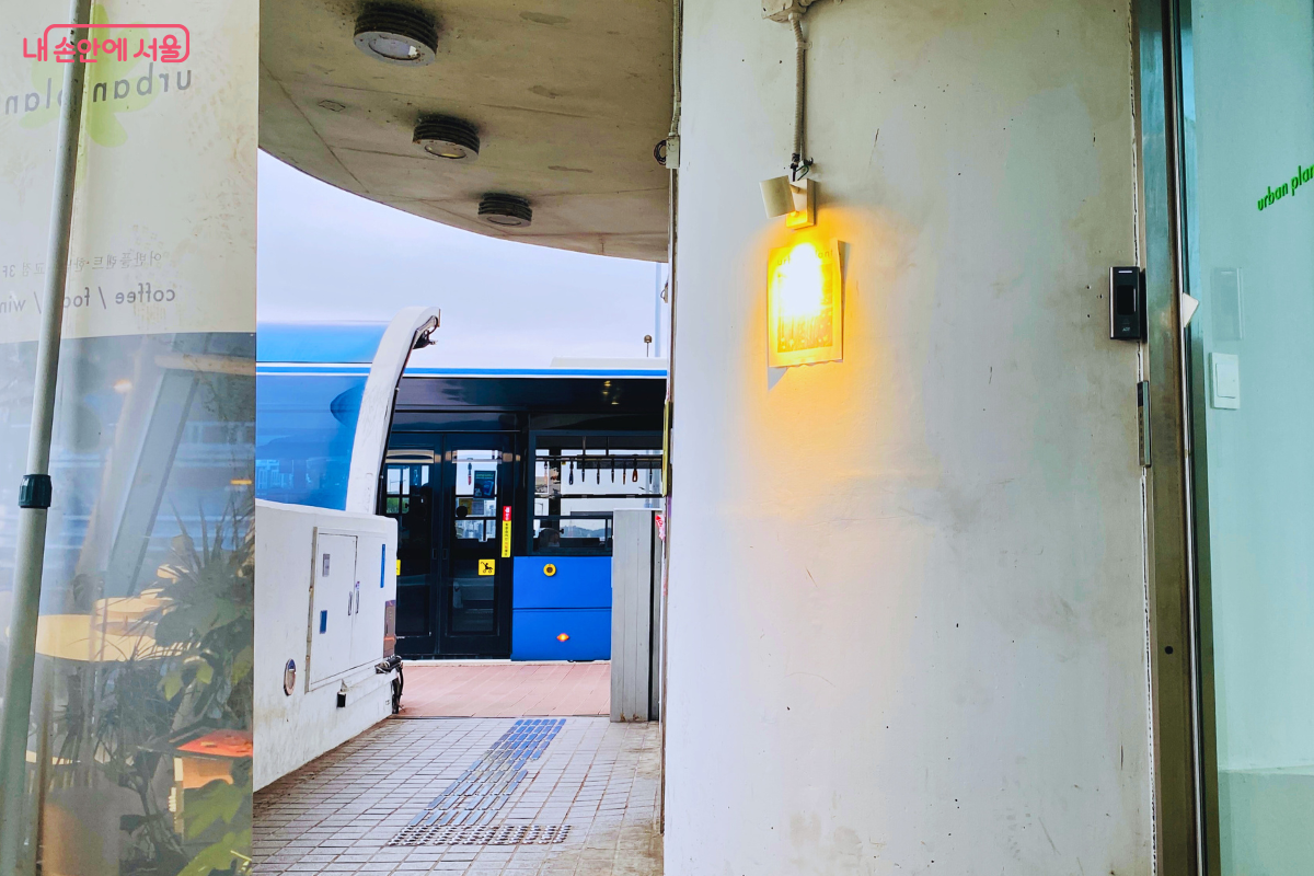 카페 출입구와 바로 연결되어 접근성이 뛰어난 버스정류장 ©양정화