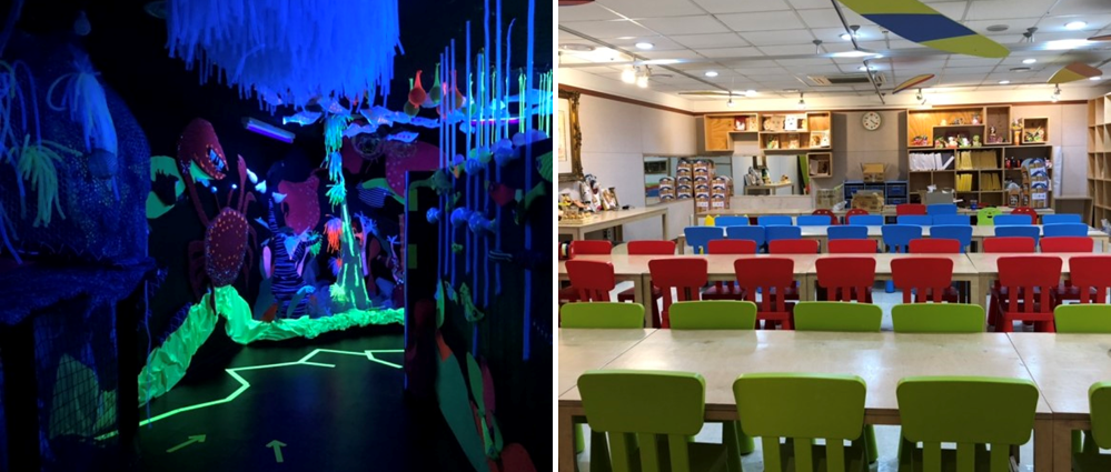 크라운해태 키즈뮤지엄은 '레지오 에밀리아 교육법'을 기반으로 아이들이 정해진 규칙에 얽매이지 않고 자유롭게 상상력을 펼칠 수 있는 놀이 중심의 뮤지엄이에요. 아이들 스스로 놀이를 만들어갈 수 있도록 지켜보아달라는 메세지에 깊이 공감했어요. 아이들이 가능한 많이 상상력을 발휘하여 놀 수 있도록 구성된 놀이공간들이 인상적이었답니다. 놀이공간을 구성하는 도구들은 연령에 관계없이 가지고 놀 수 있으며 새로운 발견과 재미난 창작 도구들이었어요. 크라운해태답게 과자집 만들기 등 과자를 활용한 창작 프로그램도 있답니다.