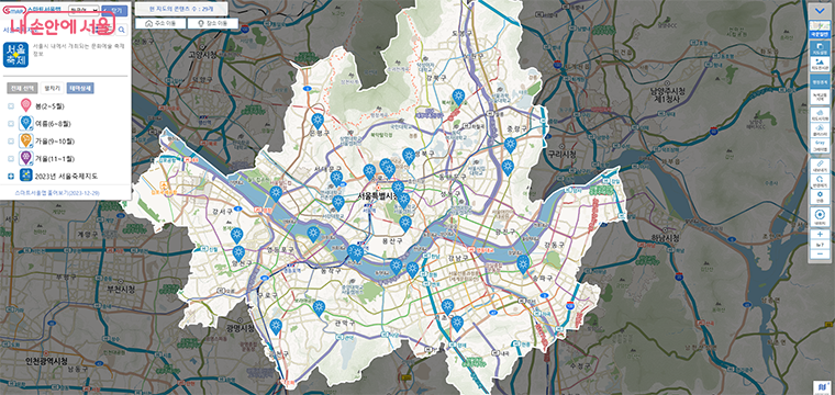 스마트 서울맵에서 계절별 서울축제지도를 한눈에 살펴볼 수 있다.