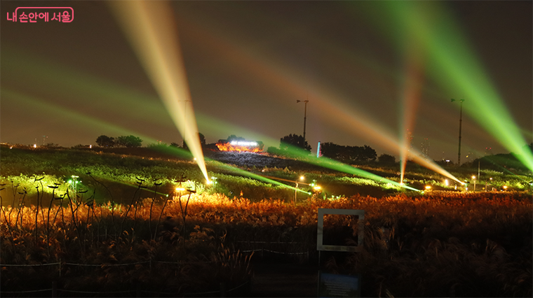 음악송출과 함께 레이저 조명으로 약 6만 평 억새밭을 수놓는 화려한 라이팅쇼 (1회당 약10분 소요)