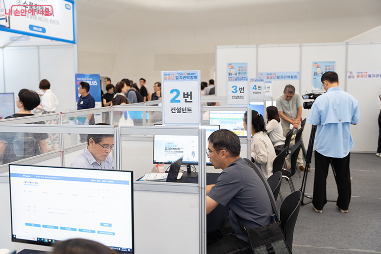 2024년 서울 중장년 일자리박람회에서 재취업을 위해 경력설계 상담을 받고 있는 모습.