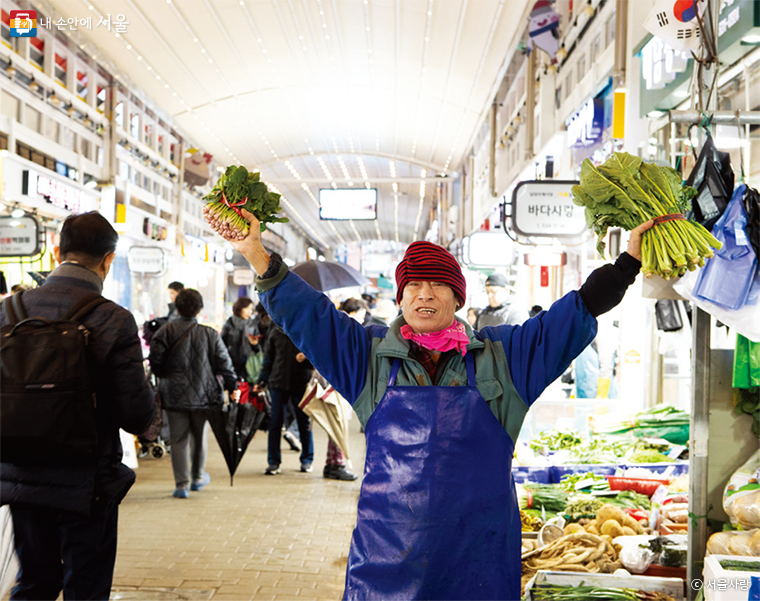 나는 종종 이곳에 국밥을 먹으러 들르기도 하고, 특히 여러 신선한 재료를 사러 많이 간다. 조금도 과장하지 않고 이곳의 신선식품은 서울에서 첫 손가락에 꼽힐 만큼 품질이 좋다. 손님들의 손이 크다는 증거이기도 하고, 이곳 상인들의 자부심이기도 하다. 상인들 중에 젊은 층이 늘어나는 것도 고무적이다. 시장을 무대로 새로운 세대로 변해가는 상인의 꿈을 확인할 수 있다.