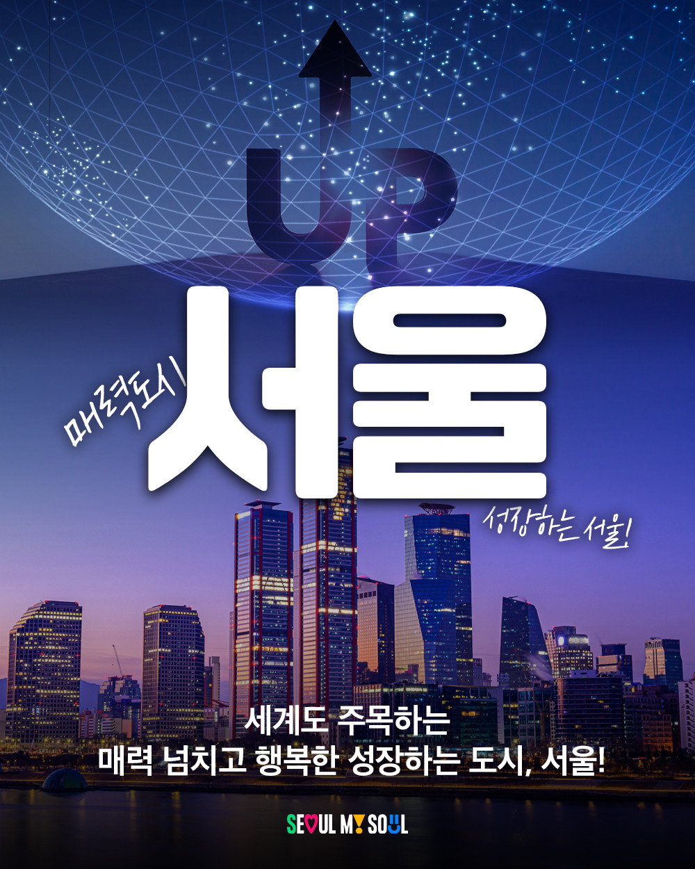 창업하기 좋은 도시, 나홀로 여행하기 좋은 도시, 행복 도시…모두 '서울'을 표현하는 문장입니다. 다양한 분야에서 꾸준히 성장하며 살고 싶고, 일하고 싶고, 여행하고 싶은 도시로 자리매김했습니다. 세계가 주목하는 매력 넘치고 행복한 성장 도시! 더 나은 미래를 향한 서울의 도약을 소개합니다.
