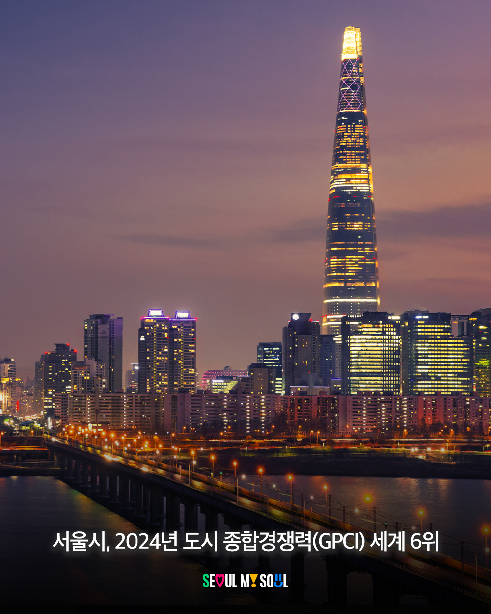 서울시가 2024년 ‘세계 도시 종합경쟁력 지수(GPCI)’ 종합순위에서 세계 48개 주요도시 중 6위를 차지했다. 시는 GPCI가 처음 발표된 2008년 13위에서 6위까지 올라섰는데, 특히 교통접근성, 거주, 연구개발 분야의 경쟁력이 상승했다.