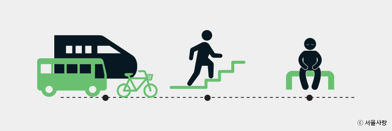 2. 특히 2030 세대는 의자에 앉아 있는 시간이 많고, 스마트폰의 영향으로 근골격계 건강이 그리 좋지 못한 편이다. 이동 시 엘리베이터나 에스컬레이터보다 계단을 이용한다면 관절 가동 범위와 근육을 더 쓸 수 있다.