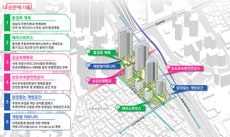 서울시는 용도지역 상향과 기준용적률 상향 등 맞춤형 도시계획을 적용해 사업성을 높였다. 제2종(7층), 제2종주거지역을 제3종 주거지역으로 상향하고 ‘2030 서울시 도시·주거환경정비기본계획’의 사업성 보정계수도 반영해 실현 가능성을 강화했다.