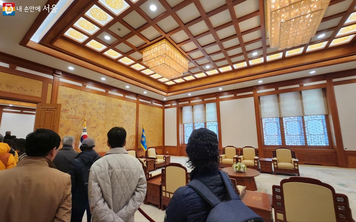 대통령 접견실을 관람하는 관람객의 모습을 볼 수 있다.