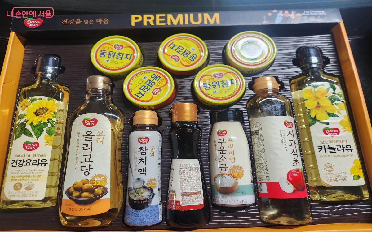 지인들에게 선물 받은 선물 세트도 챙겼다. 명절 선물 세트로 많이 이용되는 참치·햄 통조림 세트와 김 세트다. 선물 세트에 담긴 통조림과 김은 유통기한이 길고, 조리법이 간편해 선물 세트를 기부하기로 했다.