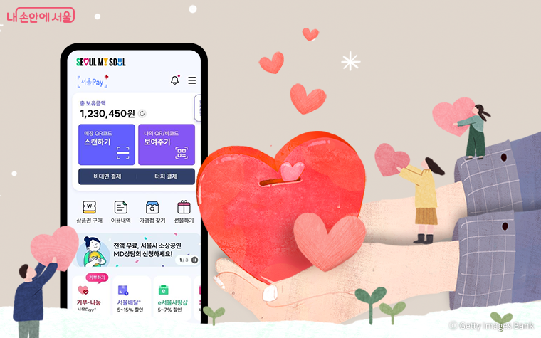 서울시가 기부에 손쉽게 참여할 수 있도록 서울사랑상품권, 세금 환급금 등을 활용한 기부 방법을 마련했다