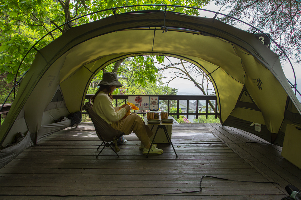 모두 울창한 숲이 시원한 그늘을 드리우고 높은 곳에 위치해 발 아래로 시원한 녹색 풍경이 펼쳐집니다. 도착하면 바쁘게 텐트를 설치하기 전에 우선 나무와 바람을 느껴보는 것도 좋습니다. 일상의 스트레스 정도는 가볍게 날아갈 만큼 숲이 주는 위안과 치유를 온몸으로 체험할 수 있습니다.