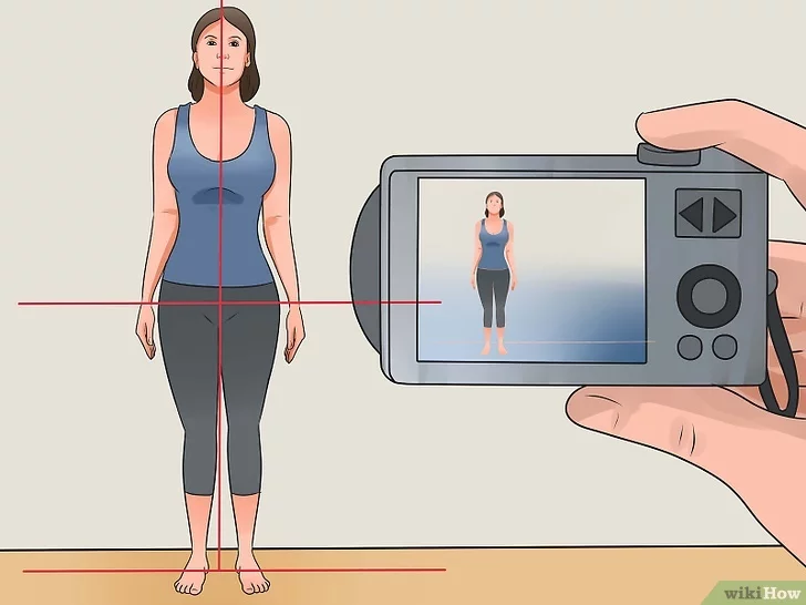 - 맨발로 거울 앞에 서거나 친구에게 전신사진을 찍어달라고 부탁한다. 직립 자세로 곧바로 서고, 긴장은 푼다.