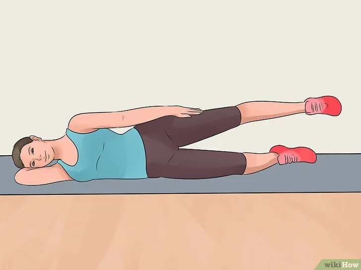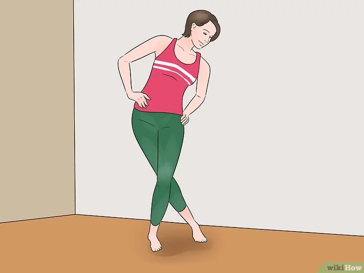 - 교차된 다리의 골반을 기울여 벽 쪽으로 몸을 구부린다.