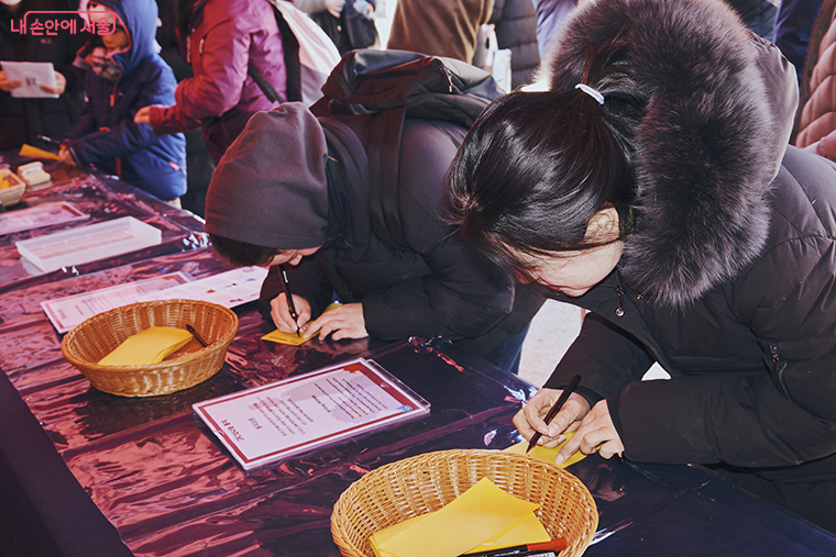 동지를 맞아 새해 복을 기원하며 부적만들기, 소원쓰기 등 체험이 진행된다. 사진은 2023 남산골 세시울림 동지.