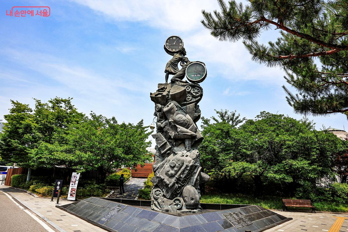 '전쟁기념관' 정문에서 가장 먼저 눈에 띄는 6·25전쟁 조형물 청동검 ©박우영