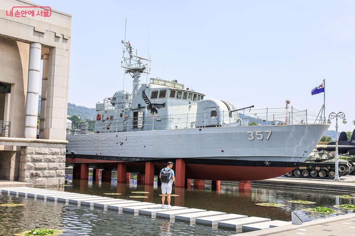 2002년 제2연평해전 당시 북한 함정의 기습 공격을 받았던 참수리357호정 모형 ©박우영
