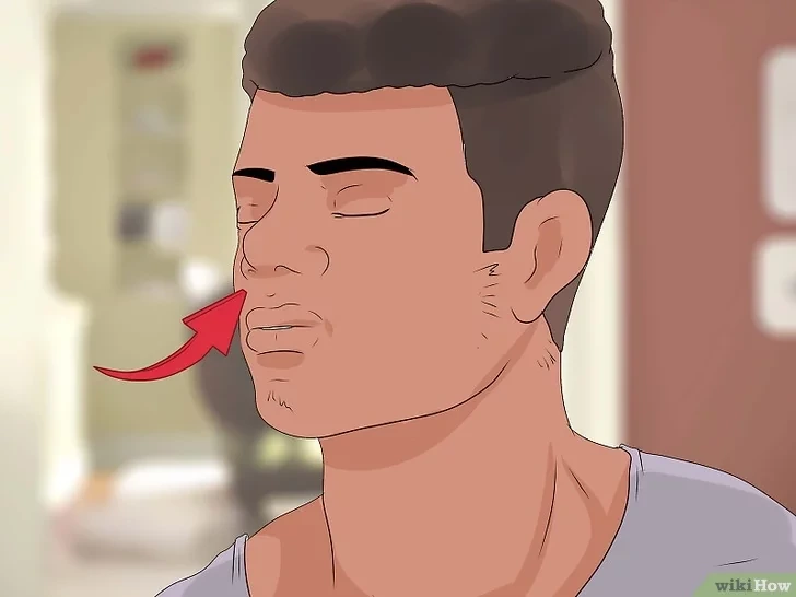 ' 숨을 천천히 들이마실 때 횡격막에 특히 신경을 쓰고 숨을 내쉴때는 끝까지 최대로 내쉬도록 한다. 숨을 들이마실 때 횡격막이 내려가는 것을 느껴보고 숨을 끝까지 내쉬었을 때 복근이 수축하고 횡격막이 올라가는 것을 느껴보도록 한다. 3번 반복한다.
