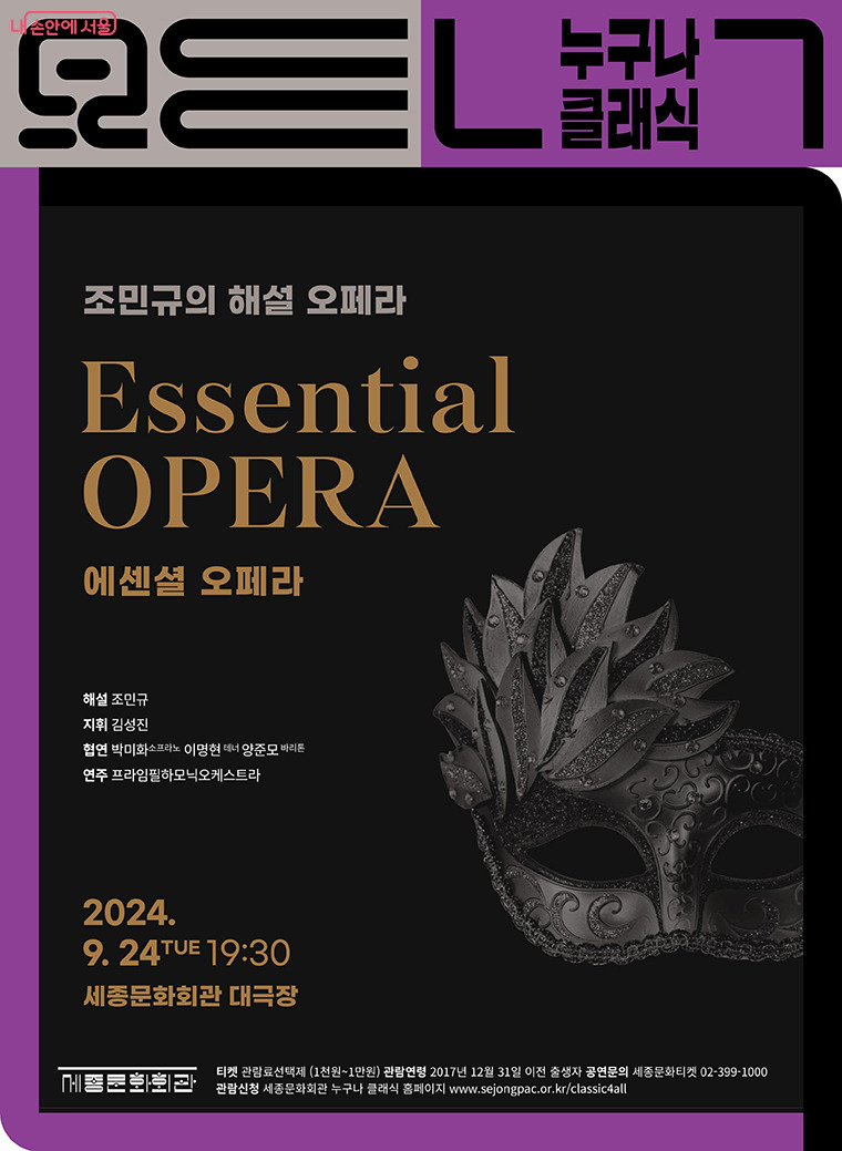세종문화회관에서 9월 누구나 클래식 ‘조민규의 해설 오페라 Essential Opera’가 열린다