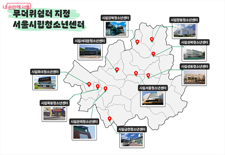 | 서울 청소년센터 | 중구 을지로11길 23 | 09:00~20:00 ※토,일/공휴일 09:00~18:00 |