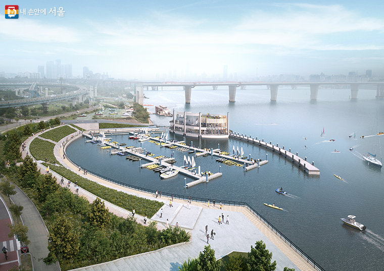 ‘서울수상레포츠센터’는 수상 69척, 육상 86척을 포함해 총 155척을 수용할 수 있는 계류장과 교육장, 카페, 휴게공간으로 구성된 복합 마리나시설이다. 운영자 선정 후 6월에 본격 운영할 예정이다.