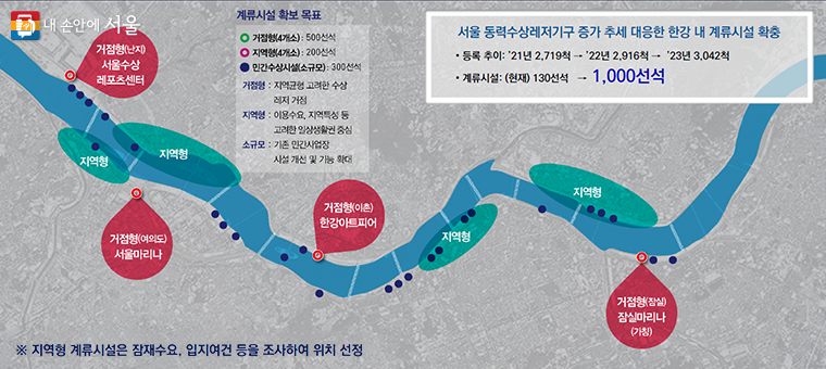 현재 130선석 규모인 한강 내 계류시설을 1,000선석 규모로 확충한다.