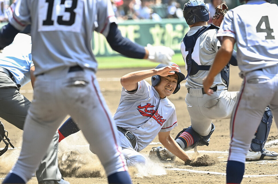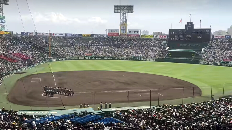 이날 승리 후 교토국제고 선수들은 홈플레이트에 모여 “동해 바다 건너서 야마도 땅은 거룩한 우리 조상 옛적 꿈자리”라는 한국어 교가를 제창했다. 이 모습은 공영방송 엔에이치케이(NHK)를 통해 일본 전국에 생중계됐다. 고시엔에서는 경기가 끝난 뒤 장내에서 승리 학교 교가를 부르는 것이 관례다. 이날 경기 모습을 사진으로 모아봤다.