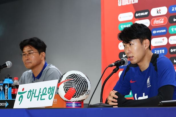 축구 대표팀 주장 손흥민(오른쪽)과 김도훈 임시 감독이 10일 고양종합운동장에서 열린 중국과 월드컵 2차 예선 최종전 기자회견에 참석했다. /뉴시스